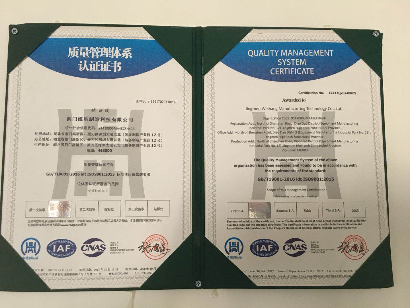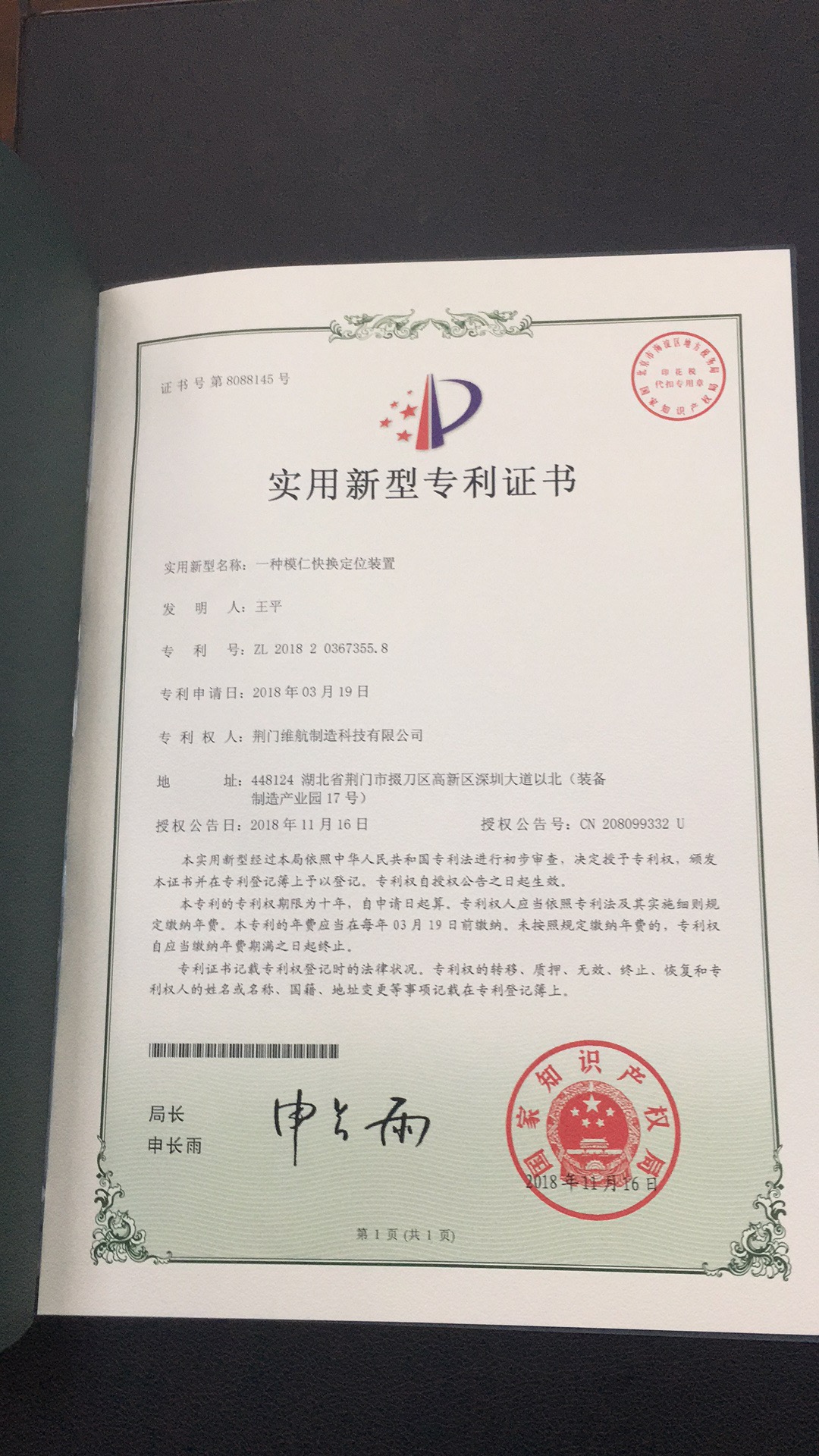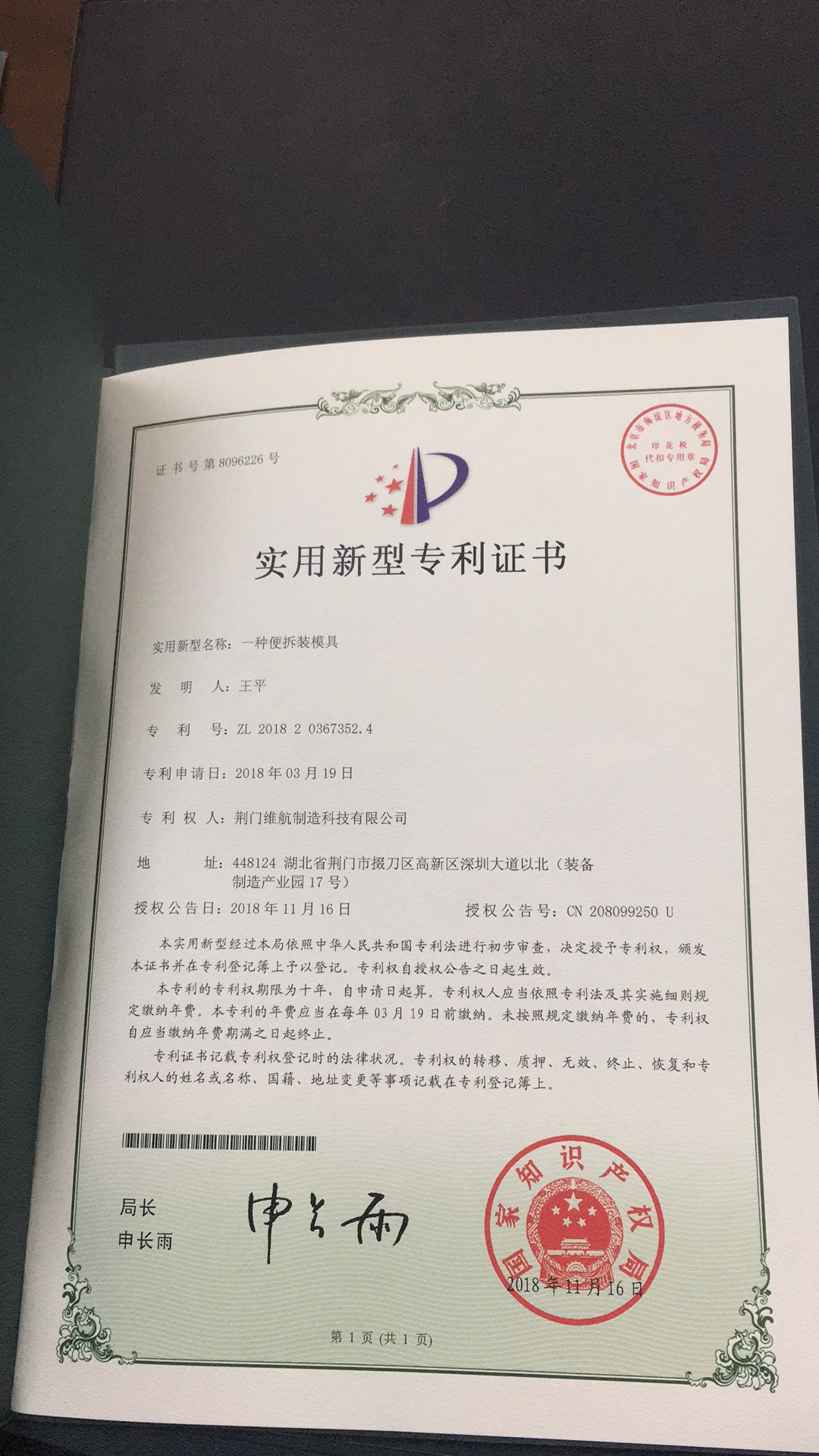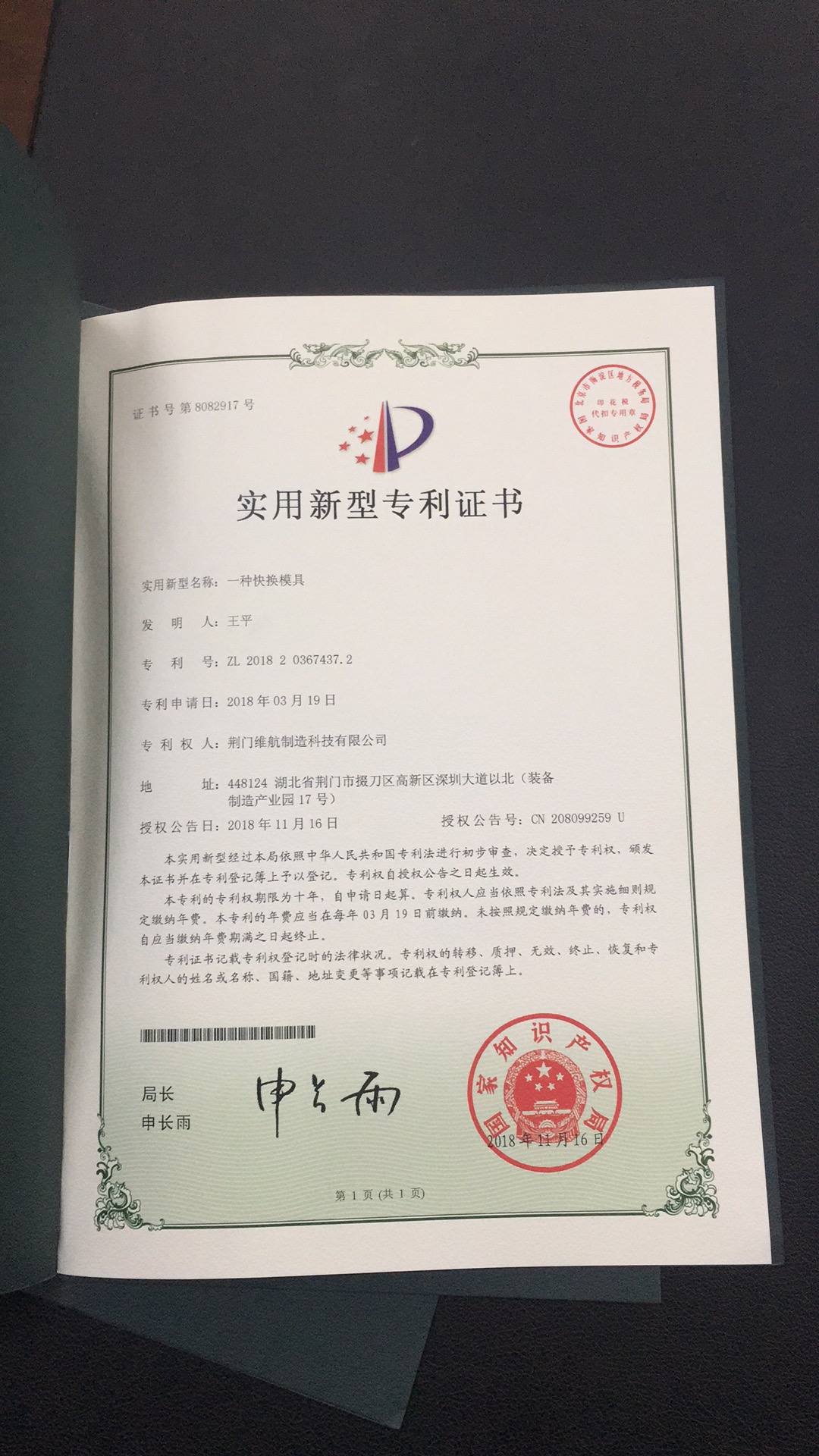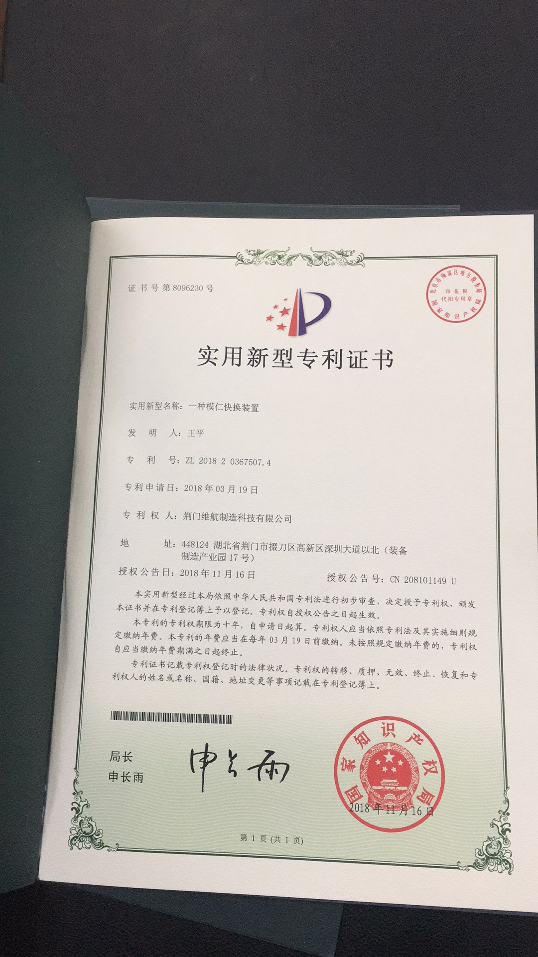 公司通過(guò)質(zhì)量管理體系認(rèn)證證書(shū)、實(shí)用新型專利證書(shū)等
